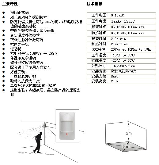 型號:RK410PT-雙元紅外防寵物探測器